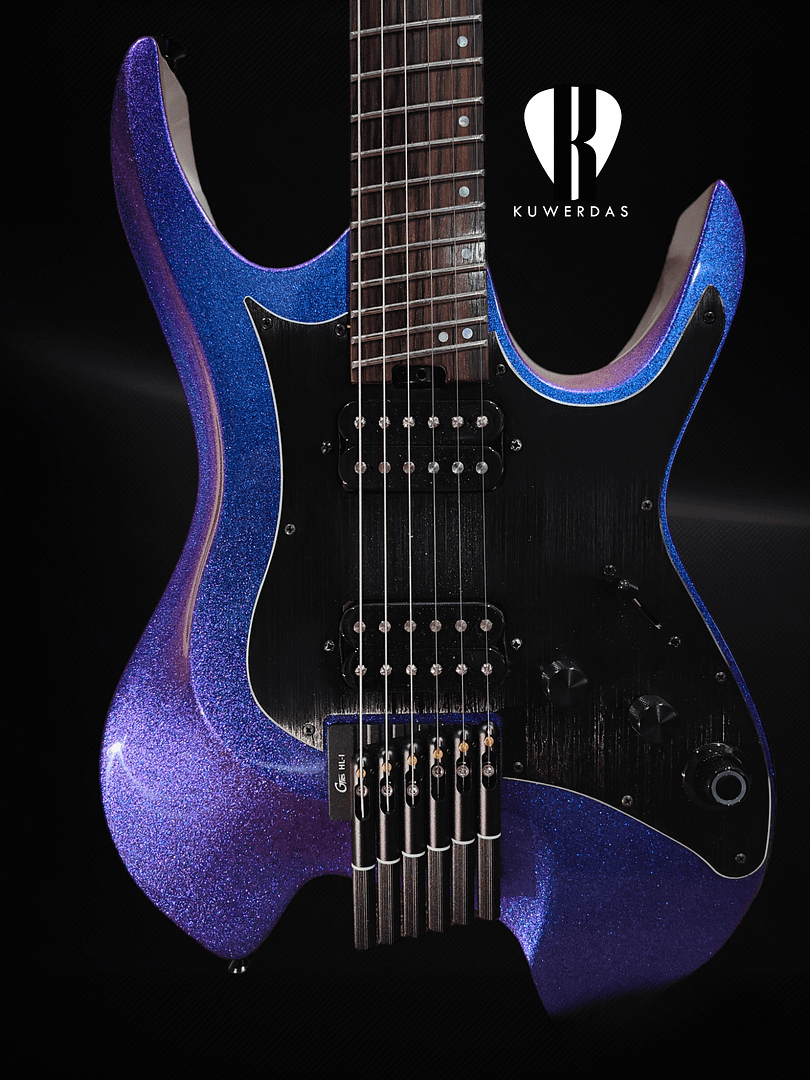 The body of the GTRS W900 is made from American alder, a wood known for its resonant qualities. This gives the guitar a balanced tone with pronounced mids, making it versatile for various genres. One of the aesthetically striking features of this instrument is its high gloss color-changing paint, specifically in the eye-catching Aurora Purple. This finish not only enhances the visual appeal but also protects the guitar’s body from wear and tear.